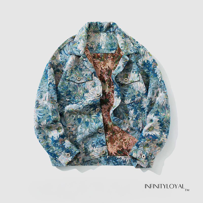A bold reimagining of classic denim, the Atlas Printed Jacket turns a timeless silhouette into wearable art. Its all-over abstract print gives vintage workwear an expressive, modern edge. Finished with signature button closures and practical pockets, it’s a standout layer for men who want their denim to speak volumes.