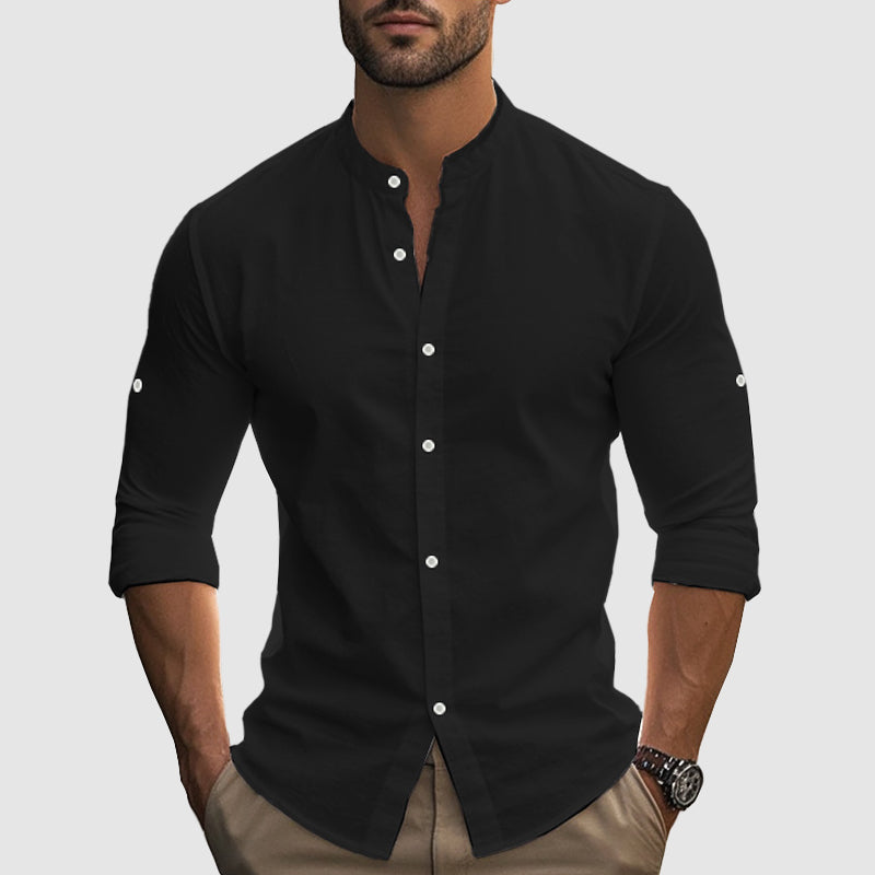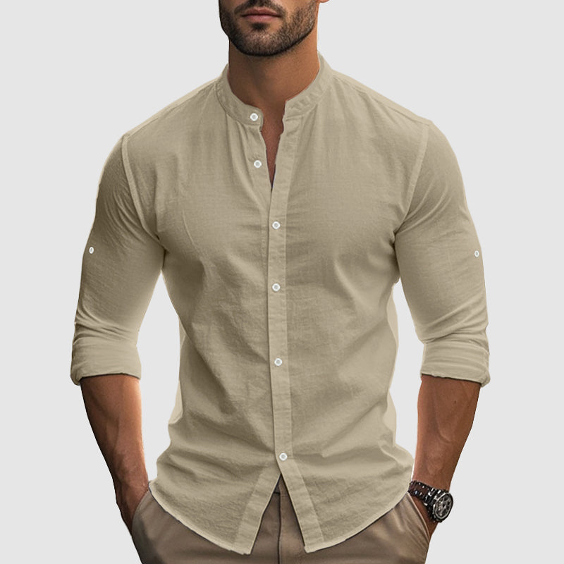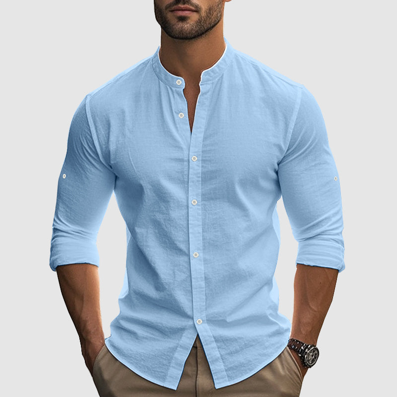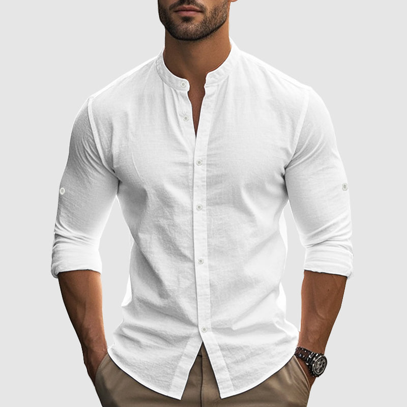 Breathable and lightweight, Jack Washington Summerfield Shirt is made from pure cotton for all-day comfort. With long sleeves and a crisp standing collar, it’s the perfect blend of casual ease and polished style for warmer days.
