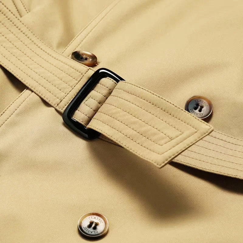 A trench designed to endure every season. Meticulously crafted with precision and tailored for the modern man, this double-breasted coat blends timeless heritage with a contemporary edge. Its structured silhouette, accented with epaulets and a belted waist, evokes confidence and authority with ease.